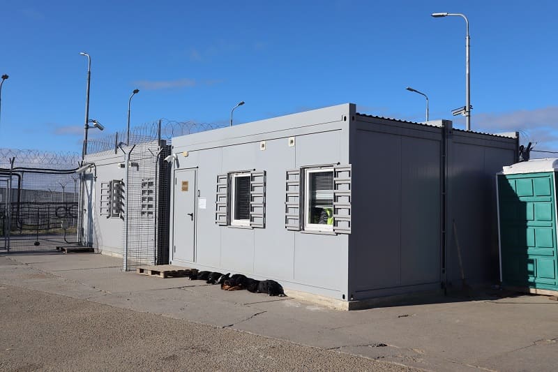 Серия металлических модульных зданий для КПП для охраны подходов к автодороге и ж\д путям.